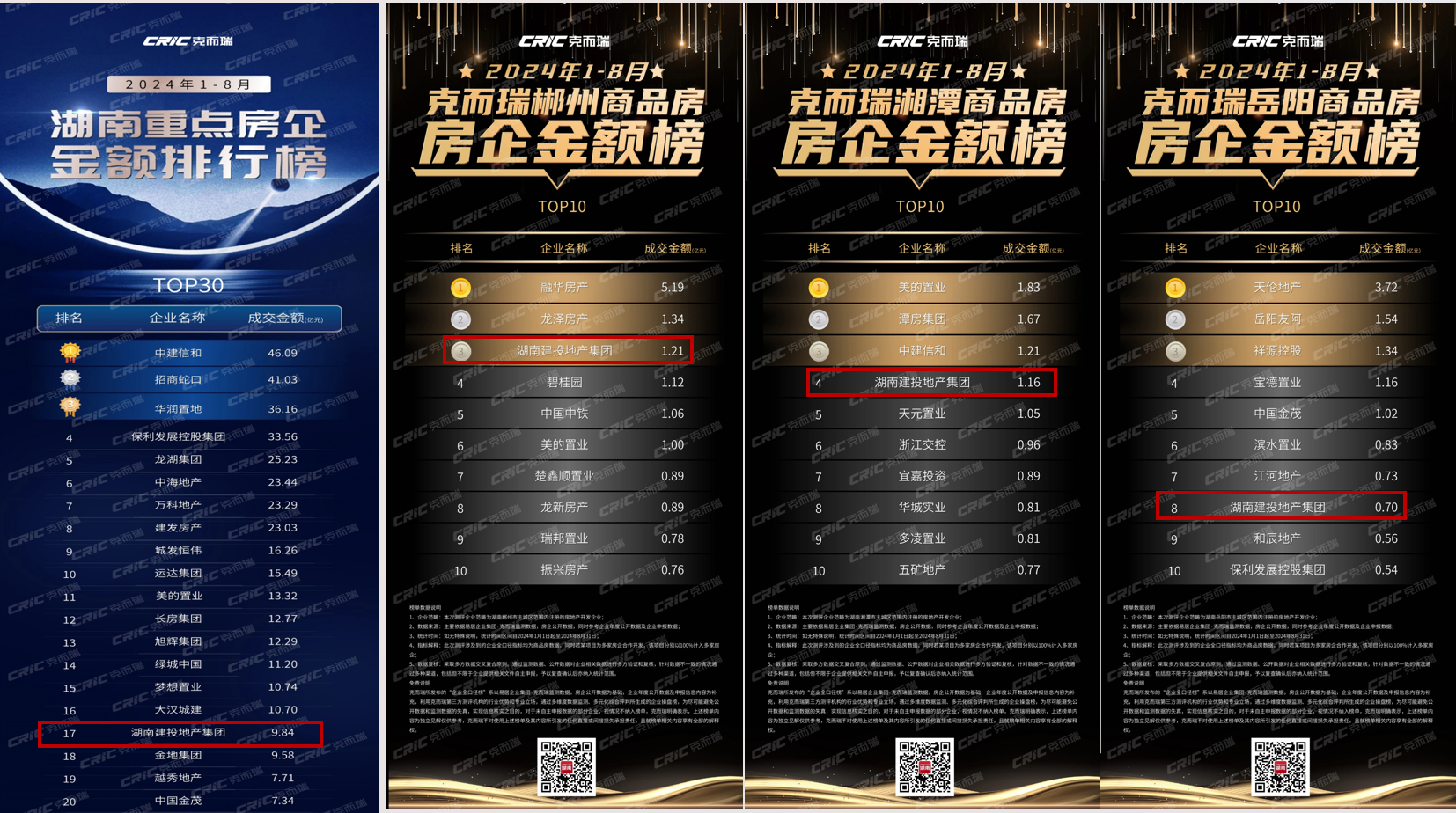 事實上,2024年1至8月,湖南建投地產(chǎn)集團已經(jīng)連續(xù)8個月登榜“湖南重點房企金額排行榜TOP20”。在各地級市,公司業(yè)績始終名列前茅:位列郴州市房企金額榜TOP3、湘潭市房企金額榜TOP4、岳陽市房企金額榜TOP8?。〝?shù)據(jù)來源于克而瑞湖南)